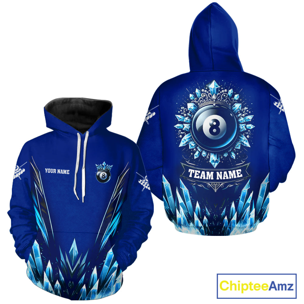 Blue 8 Ball Pool Icy Billiard Hoodie For Men And Women Custom 8 Ball Hoodie, Billiards Gifts TDM5715