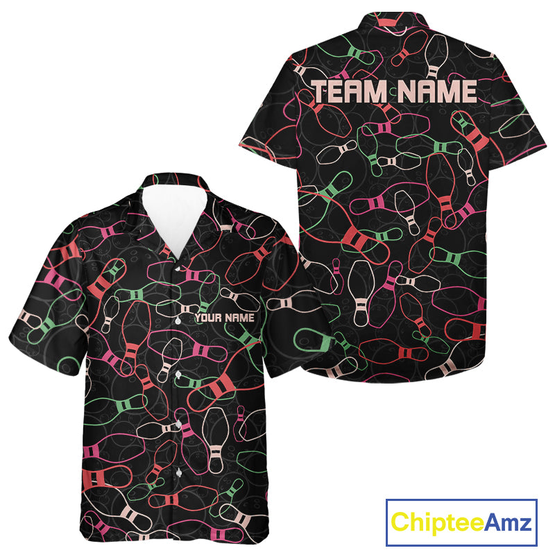 Custom Retro Style Bowling Pattern Button Up Shirt, Vintage Bowling Hawaiian Team Shirt IPHW10077