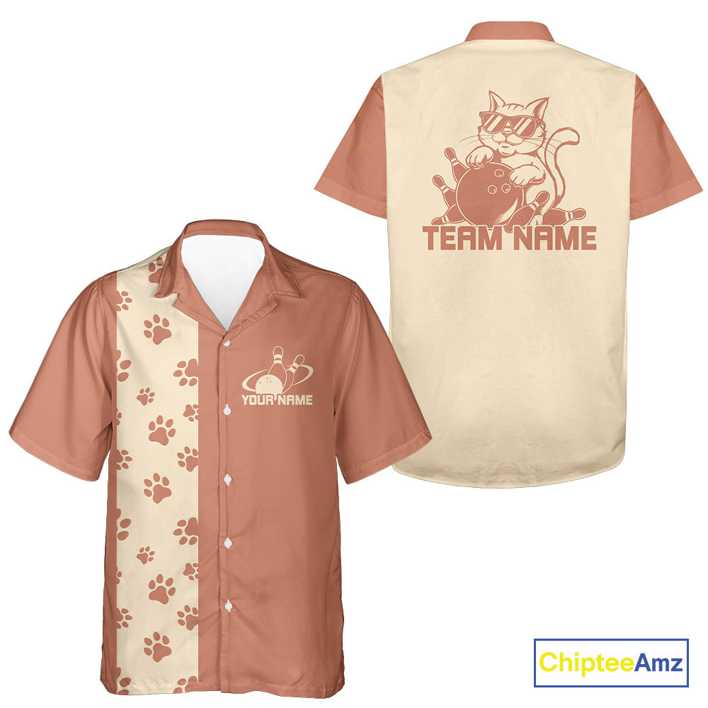Custom Retro 50S Cat Bowling Button Up Shirt Men And Women, Vintage Cat Bowling Shirt IPHW10095