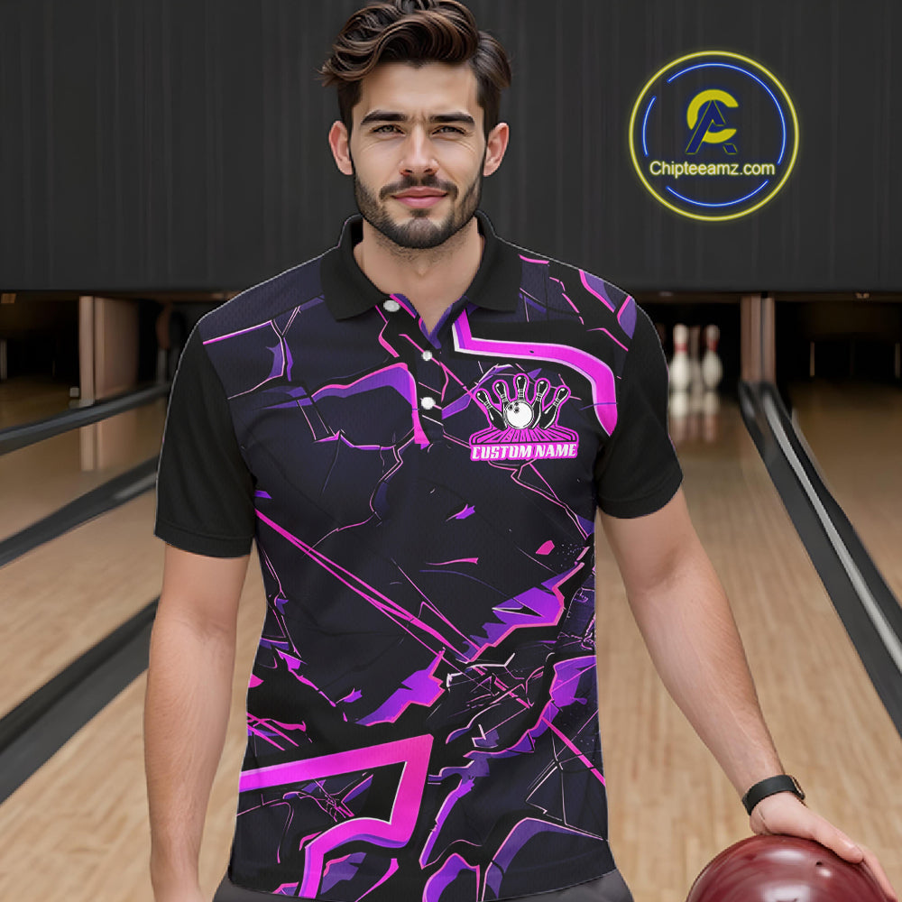 Pink And Purple Custom Bowling Team Shirts For Men And Women, Bowling Tournament Outfits IPHW6470