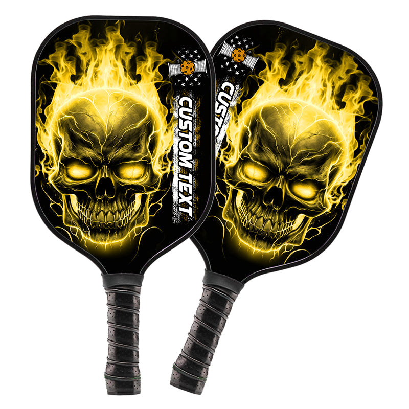 Custom Yellow Flame Skull Pickleball Paddle Halloween Pickleball Gifts, Patriotic Pickleball Paddles IPHW7468