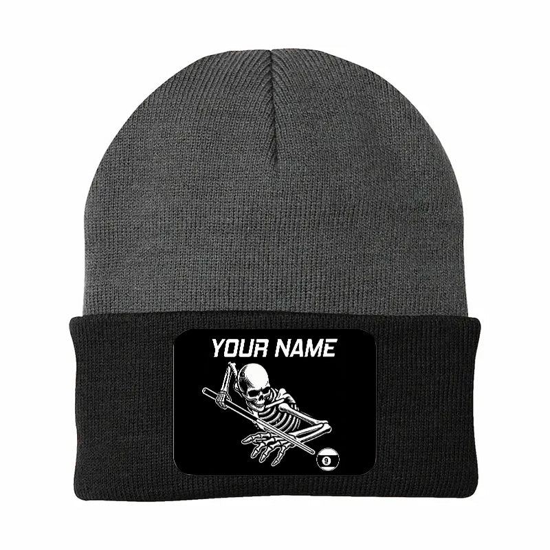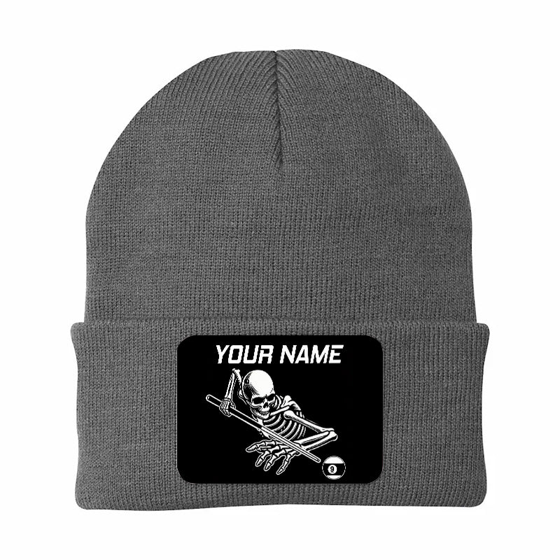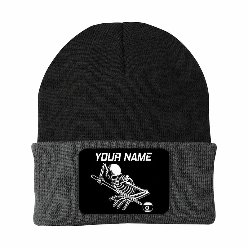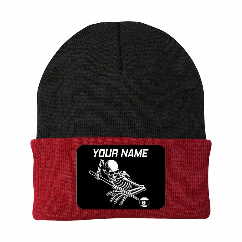 Personalized Skull 9 Ball Billiard Knit Beanie Hat With Rectangle Patch Custom Billiard Knit Cap TDM4941