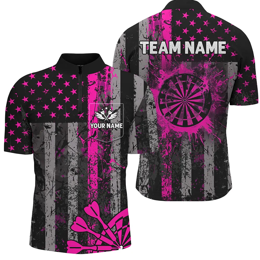 ✔️ Custom Unisex Dart Shirts Our uniquely designed dart polo and quarter-zip shirts are ideal for avid dart players who want to make a bold statement. With a stylish form and distinctive design, these shirts set you apart, highlighting your passion and confidence in darts. Whether you are a professional player or play darts for fun, we are ready to create great shirts for you and your team. Add your personal touch to create a one-of-a-kind shirt that carries your unique imprint.