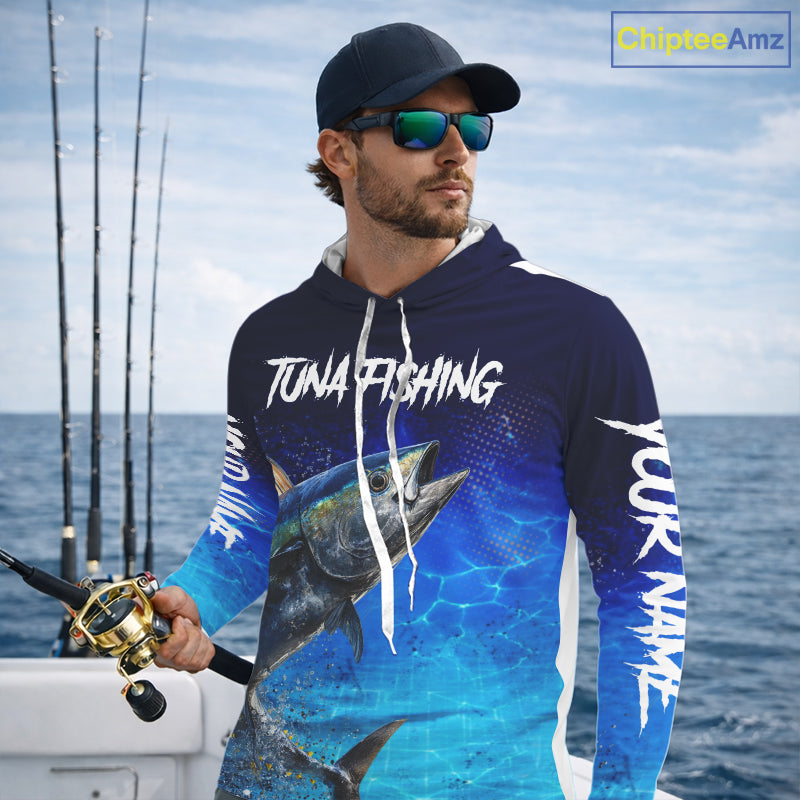 Personalized Blackfin Tuna Hooded Fishing Shirts Saltwater Deep Sea Fish NBT367