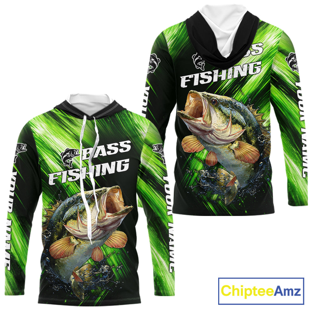 Green Camo Largemouth Bass Fishing Jersey For Men, Bass Fishing Performance Shirts Personalized Gifts NBT370