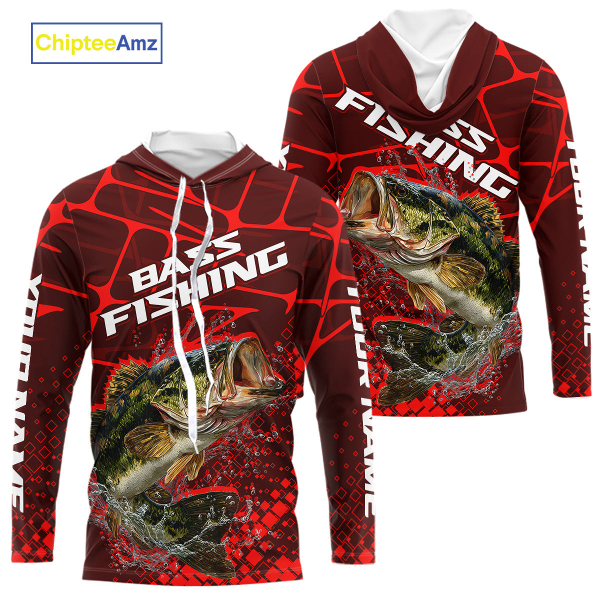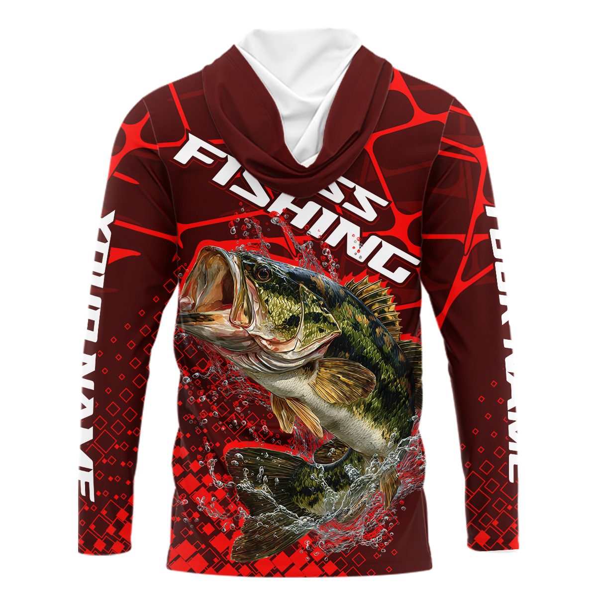 Largemouth Bass Fishing, Fishing Shirts Long Sleeve Hooded UPF Scale, Fishing Gift |Red NHT391