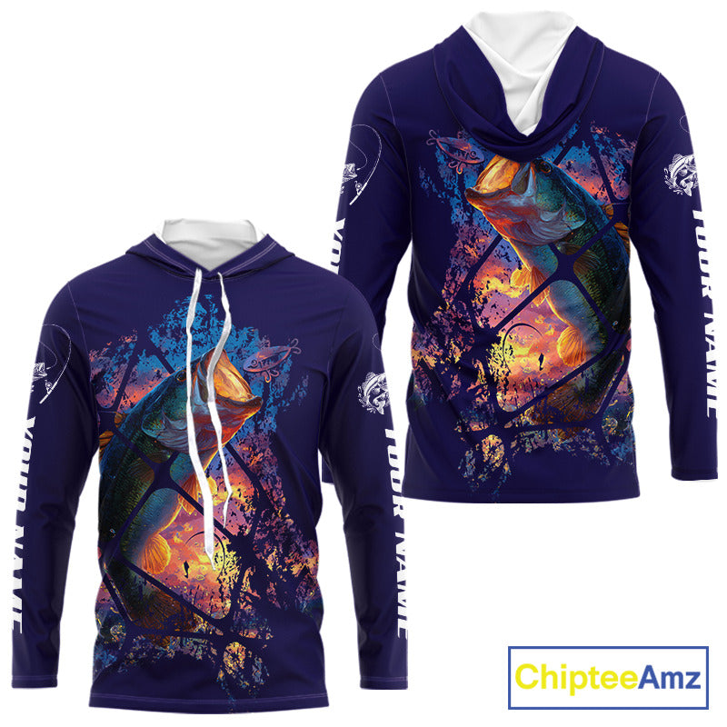 Largemouth Bass Artistic Long Sleeve Hooded Fishing Shirts Personalized Name NHT399