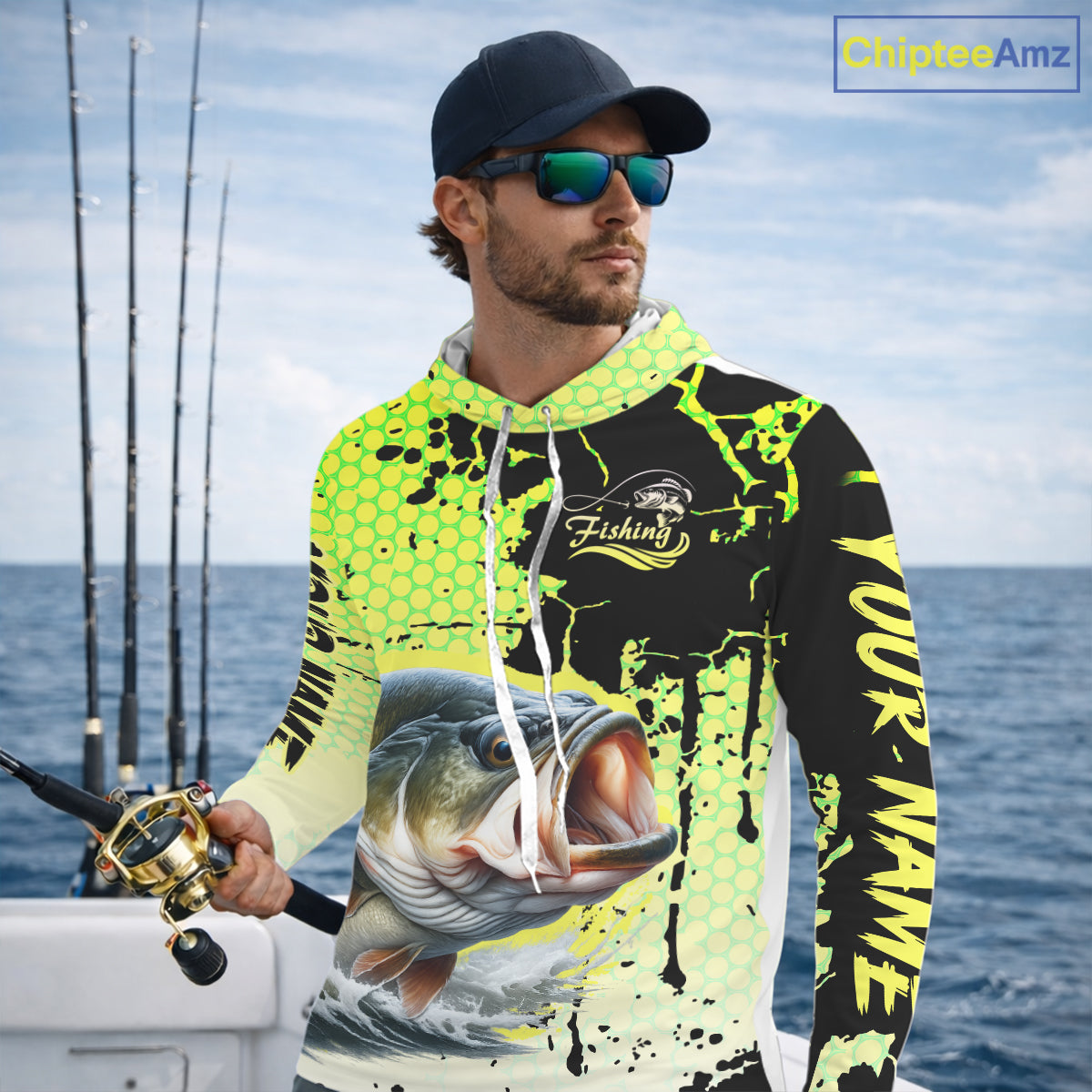 Largemouth Bass Fishing Shirts Long Sleeve Hooded Custom Bass Fishing Apparel NHT406