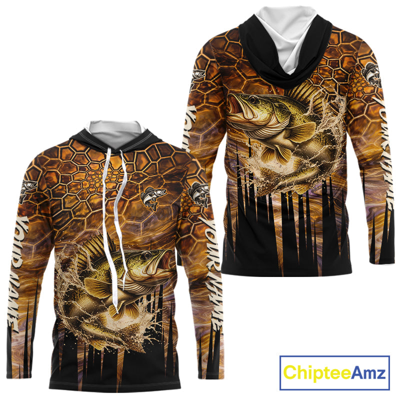 Custom Walleye Long Sleeve Tournament Camo Fishing Shirts, Walleye Fishing Jerseys NHT410