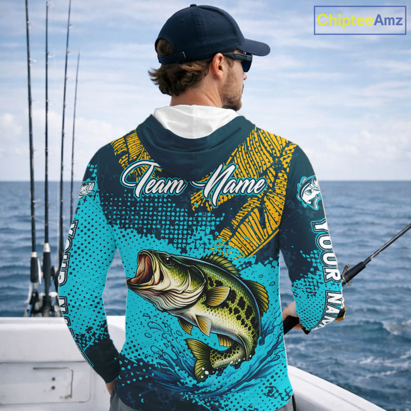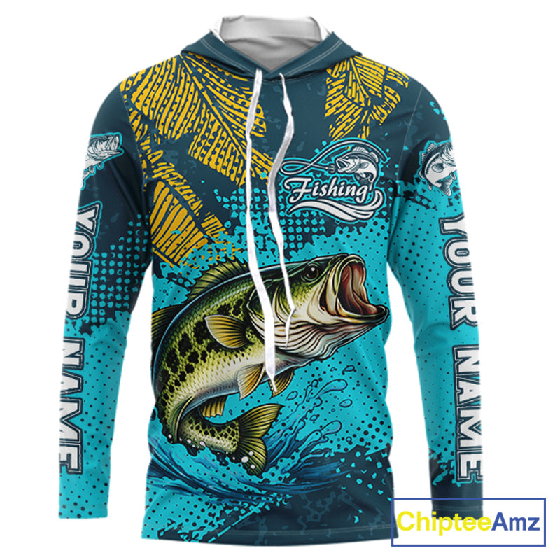 Custom Hooded Largemouth Bass Fishing Long Sleeve Tournament Shirts, Bass Fishing Shirts For Men NHT508