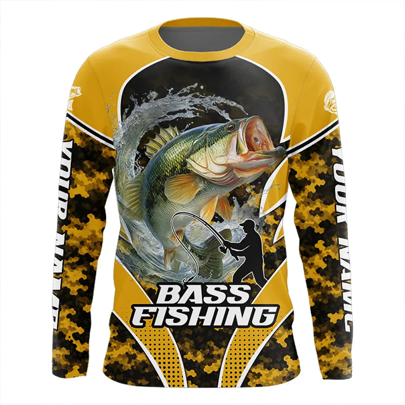 Personalized Bass Fishing Shirts Long Sleeve, UV Protection Shirt Customize Name Fishing | Yellow NHT396