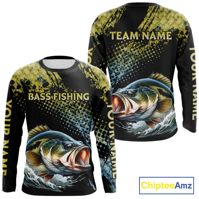 Bass Fishing Shirts Long Sleeve Sport Style Personalized Name, Team Name NHT401
