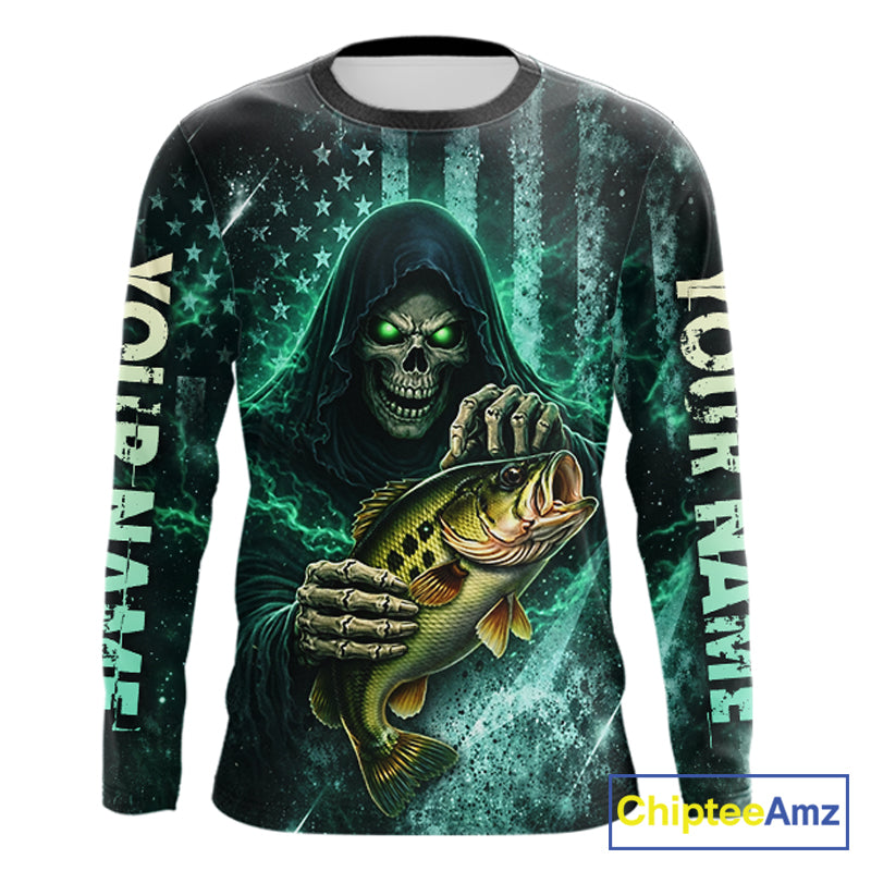 Custom Team Name Grim Reaper Bass Fishing With American Flag - Patriotic Bass Fishing Jersey NHT515