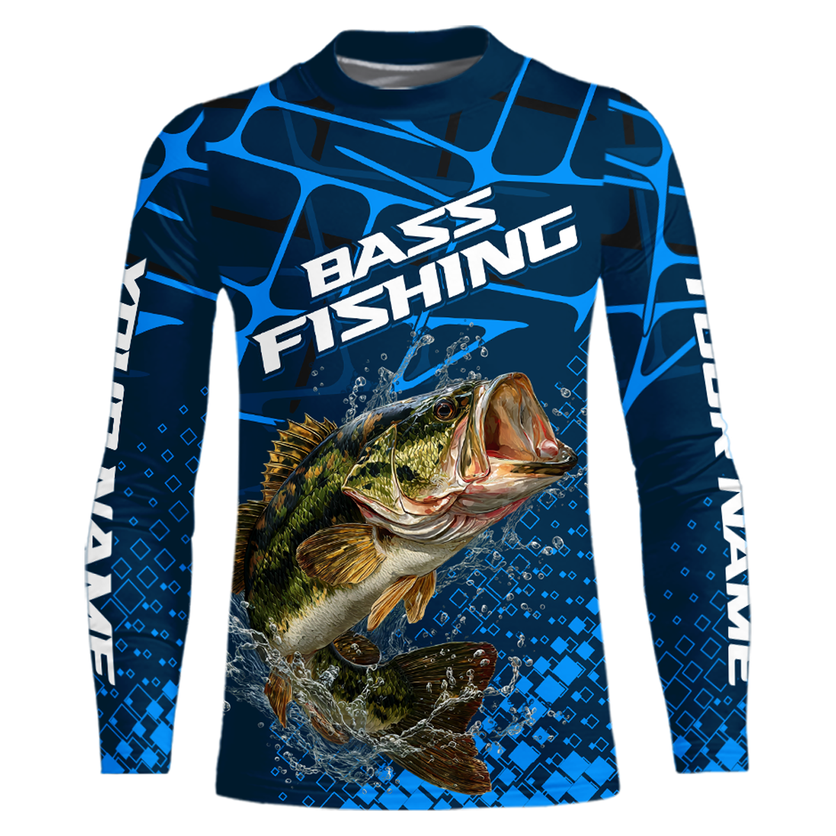 Largemouth Bass Fishing, Kid Fishing Shirts Long Sleeve, Fishing Gift  | Blue NHT385