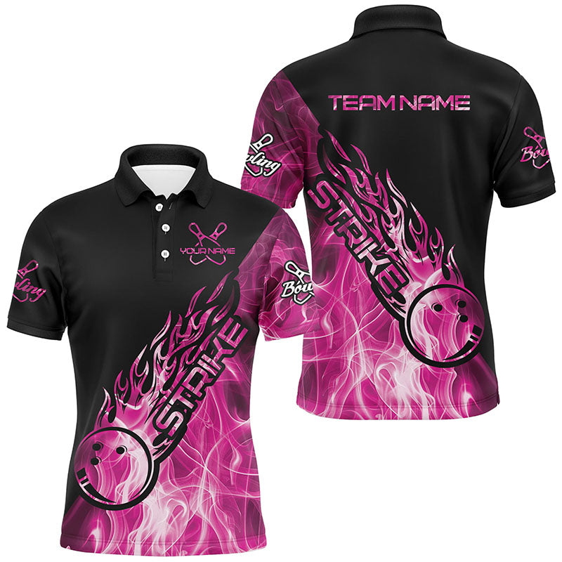 Custom Pink Flame Bowling Shirts For Men, Bowling Team Shirts Bowling Strike IPHW7156