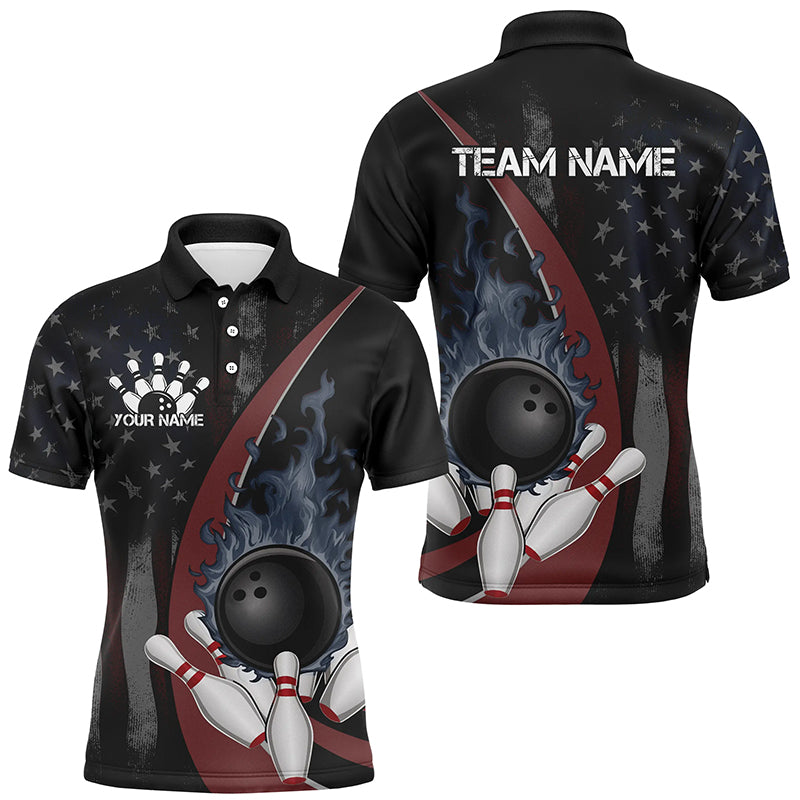 Us Bowling American Flag Custom Patriotic Bowling Shirt For Men, Flame Bowling League Shirts IPHW7278