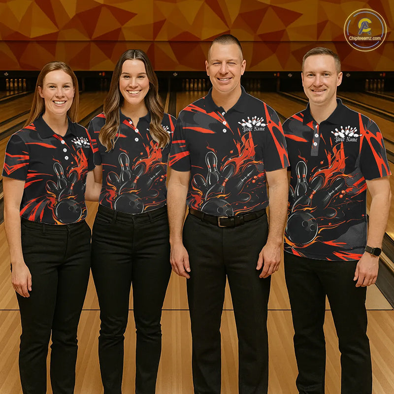 Black And Orange Custom Flame Bowling Shirts For Men, Bowling Team Shirt Bowling Uniform Outfit IPHW7400