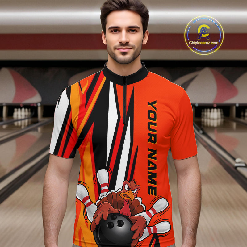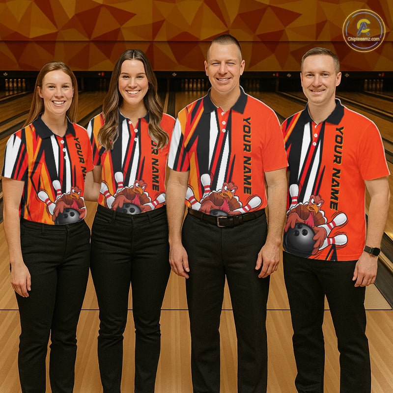 Custom Funny Turkey Bowling Shirts For Men, Orange Thanksgiving Bowling Shirt Team Uniform IPHW7659