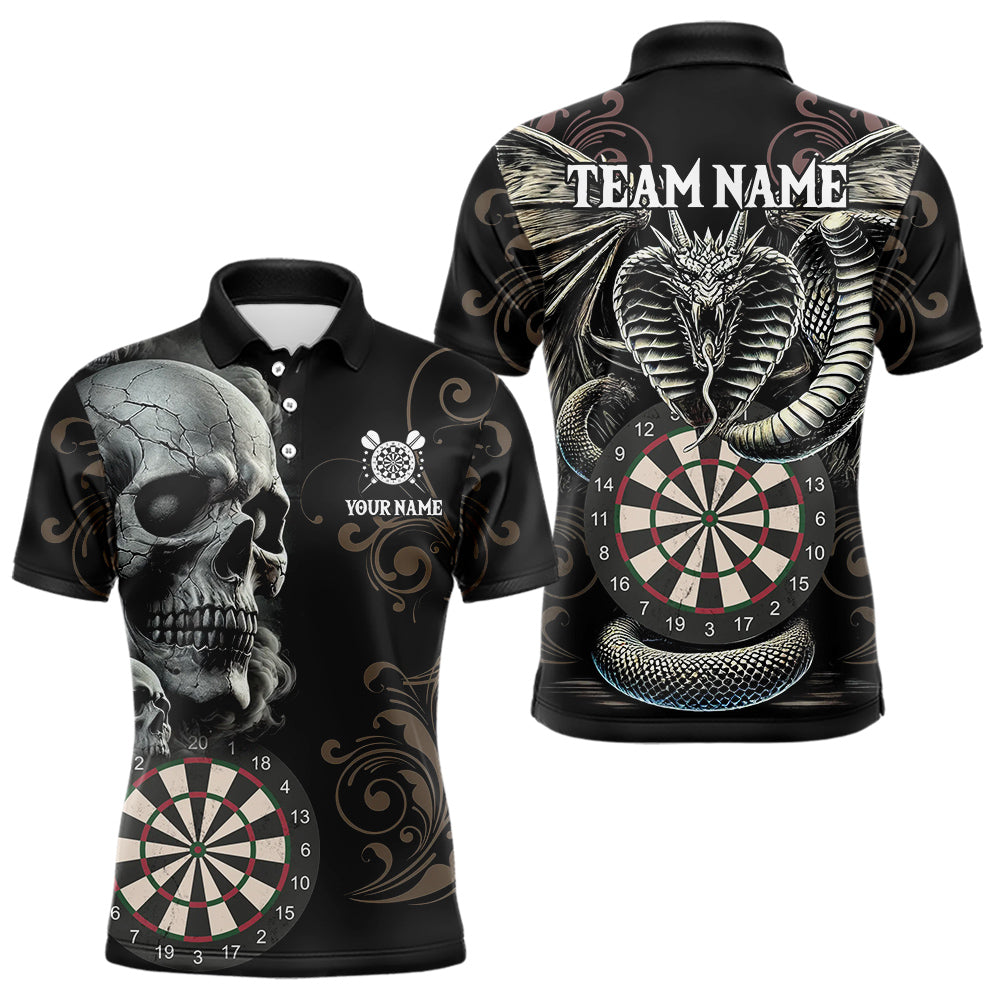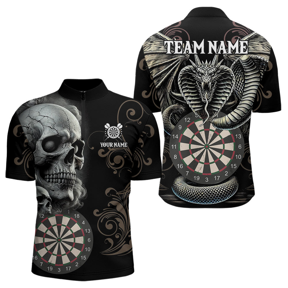 Personalized Grey Skull Dragon Polo & Quarter-Zip Dart Shirts For Men, Custom Dart Jerseys NYN0012