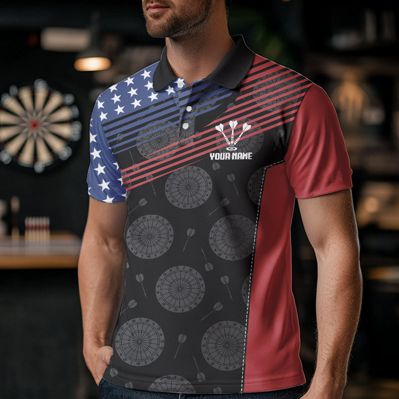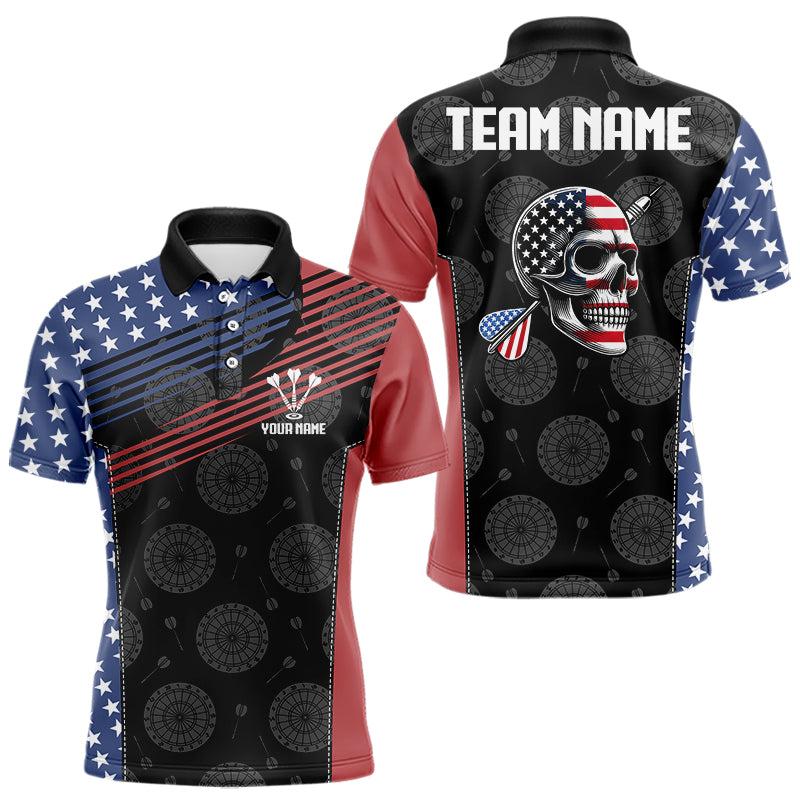 Personalized US Flag Skull Custom Patriotic Dart Shirts For Men, Dart Team Jerseys NYN0013