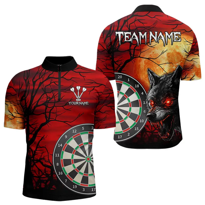 Wolf With Glowing Red Eyes Dart Boards Dart Shirts For Men, Custom Dart Jerseys NYN0039