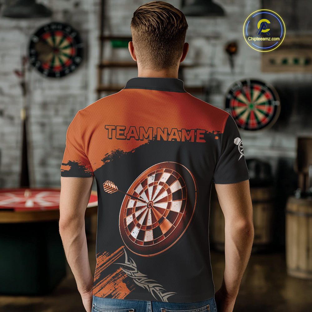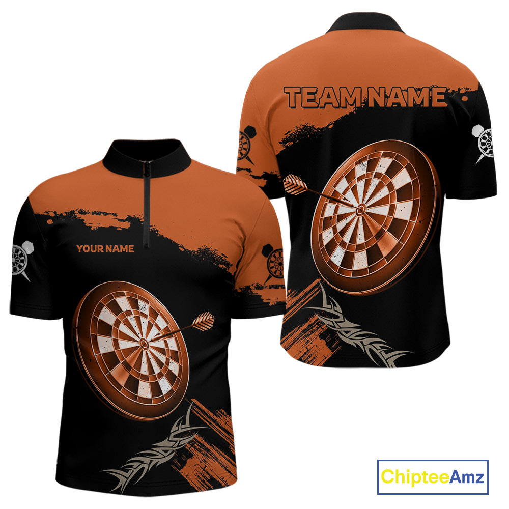 Personalized Orange Dartboard Arrow Polo & 1/4 Shirts For Men, Dart Team Jerseys NYN0052