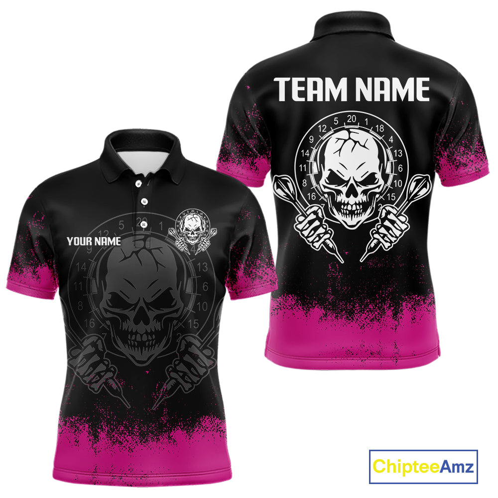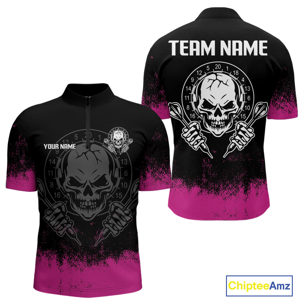 Custom Black And Pink Skull Grunge Dart Shirts For Men Outfits Dart Team Jerseys NYN0078