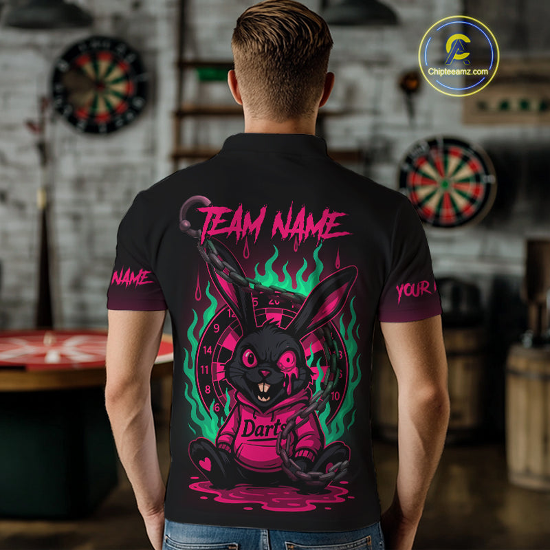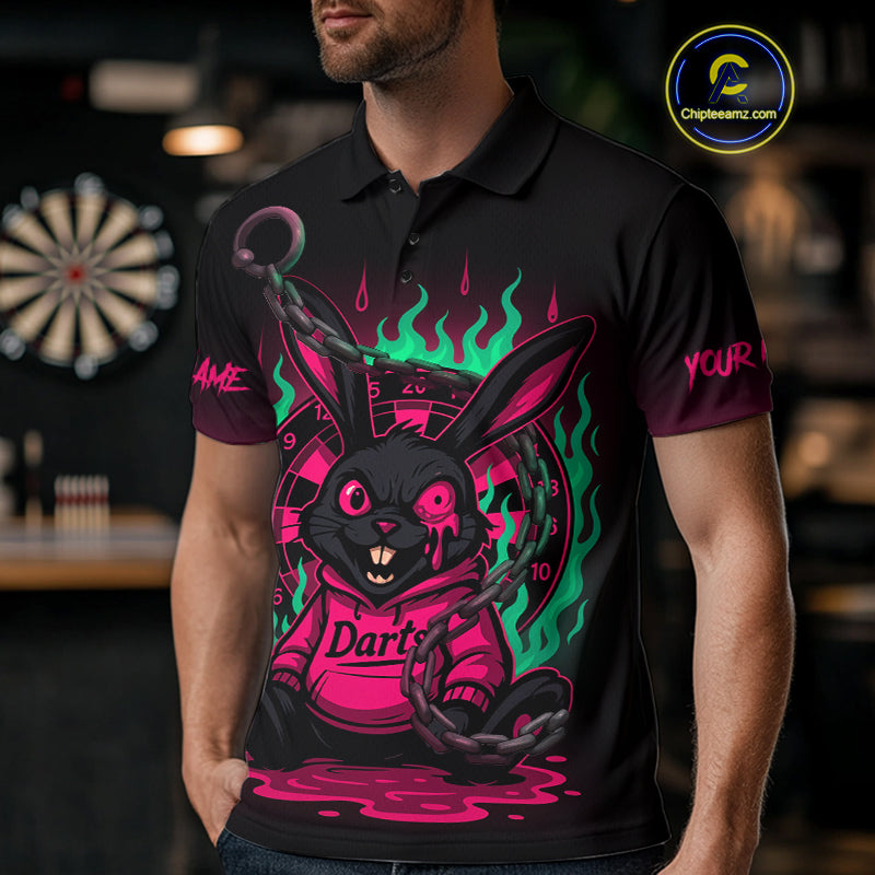 Flaming Rabbit & Pink Dartboard Darts Shirt For Men - Custom Name & Team Jersey NYN0593
