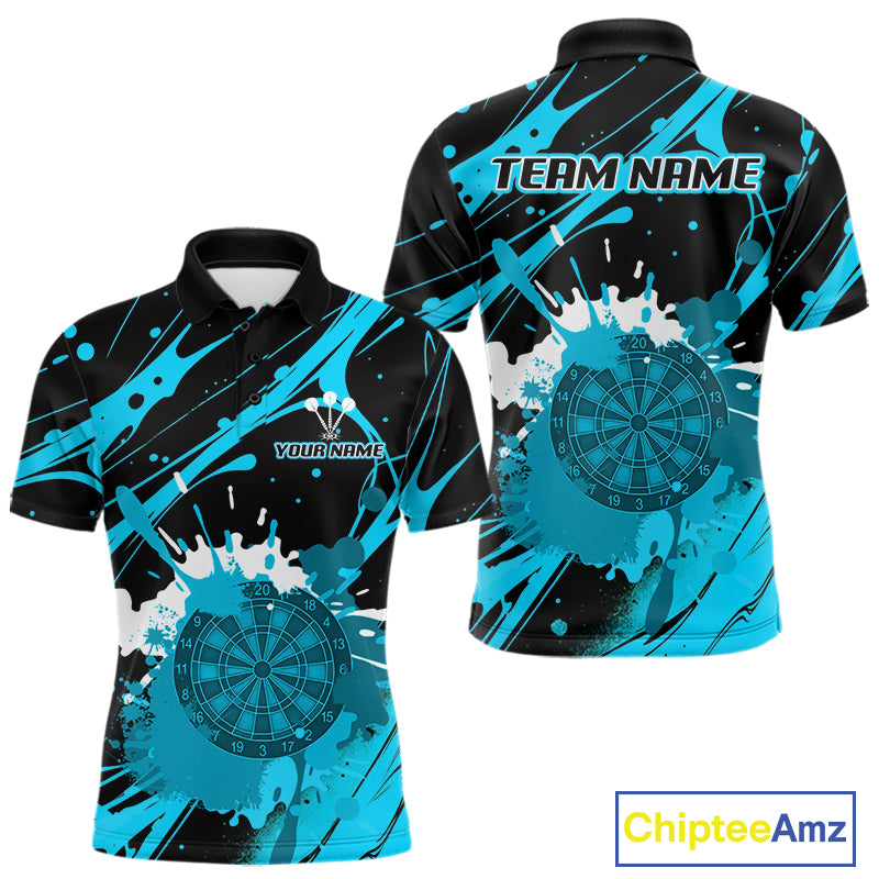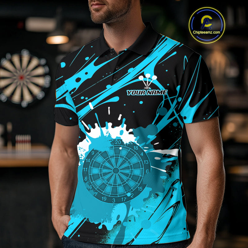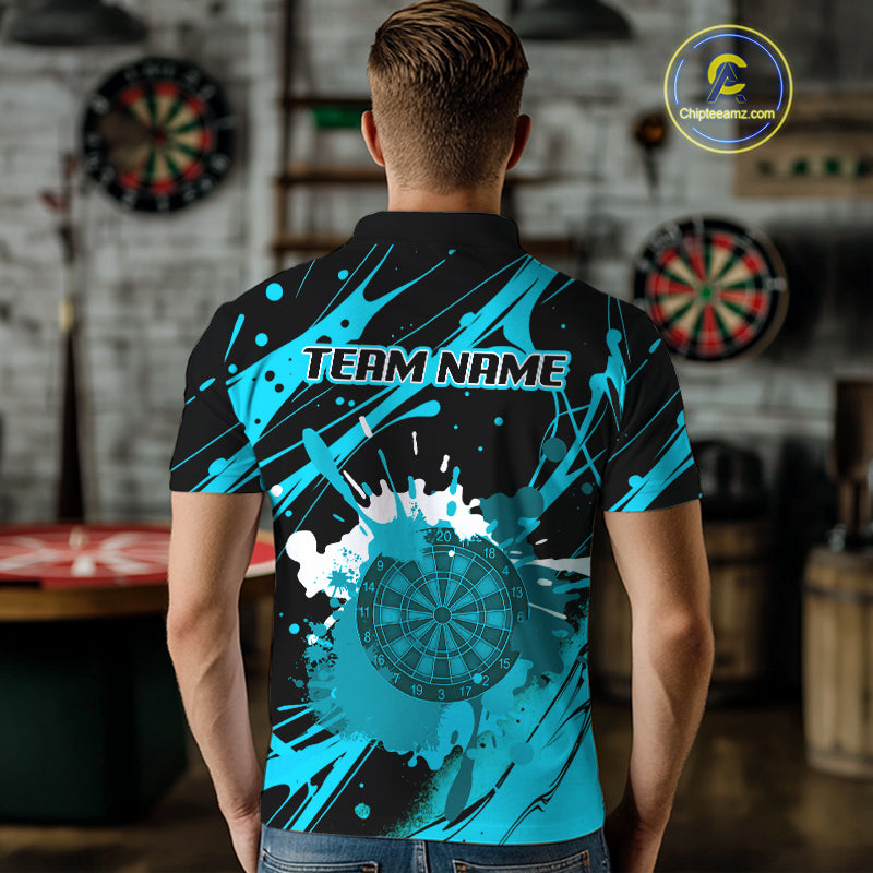 Splashed Color Dartboard Grunge Men's Darts Shirt Custom Name & Team | Opt3 - Turquoise NYN0650