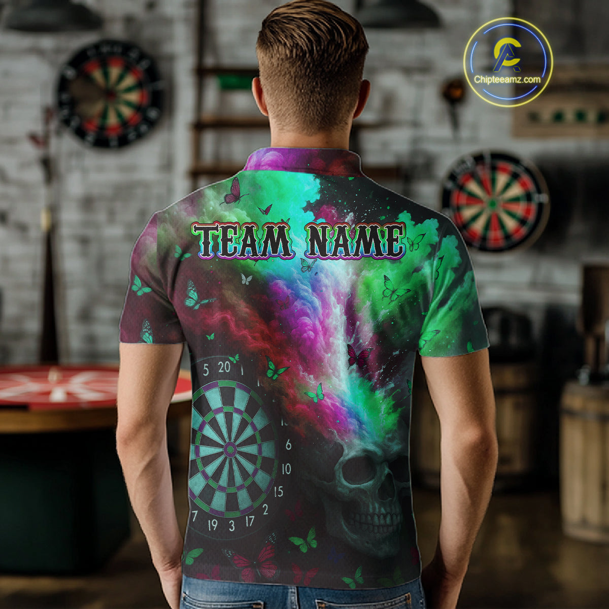 Custom Colorful Smoke Skull Dartboard Men Dart Shirt Outfits Butterflies Dart Jerseys NYN1064