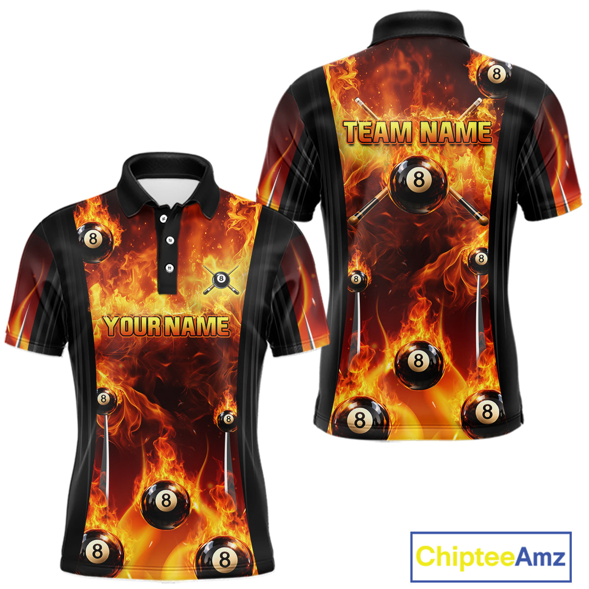 Fire Flame Ball 8 Billiard Pool Jerseys For Men Custom Ball 8 & Cue Billiard Team Jersey NYN2318
