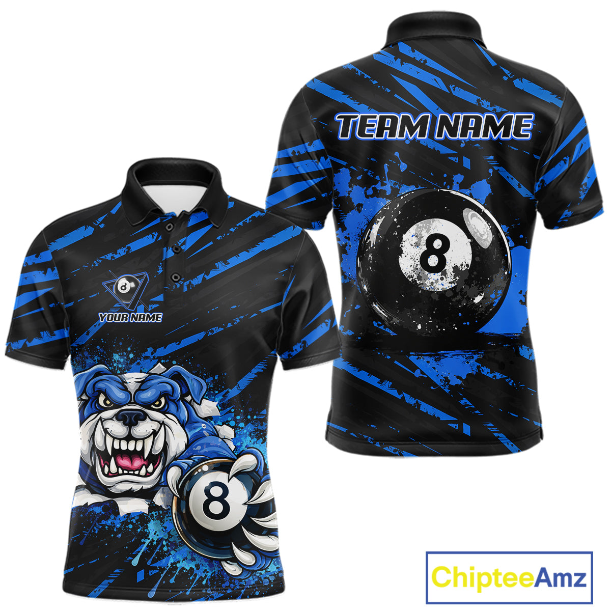 Blue Splatter Ball 8 Billiard Jerseys For Men Custom Funny Bulldog Billiard Team Jersey NYN2319