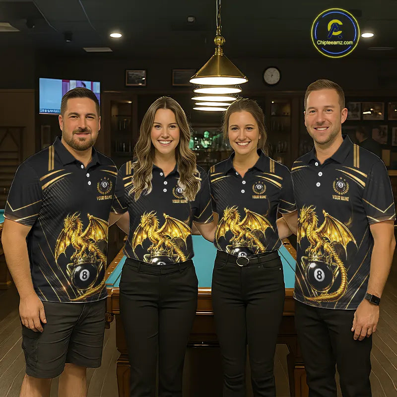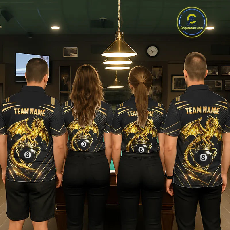 Black & Gold 8 Ball Crown Men's Billiard Team Shirt Custom Dragon Pool Billiard Jerseys NYN2348