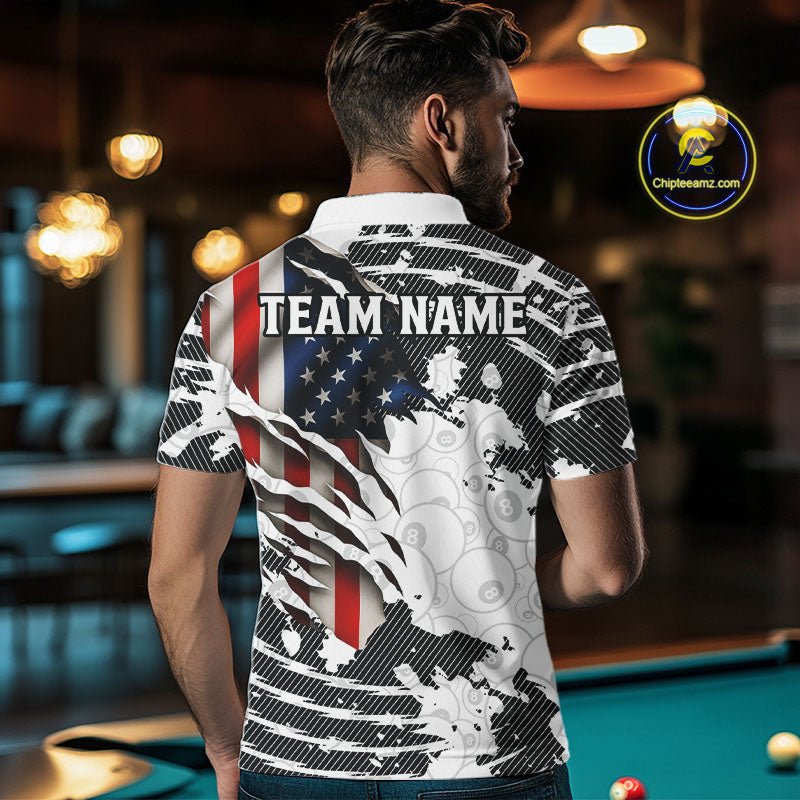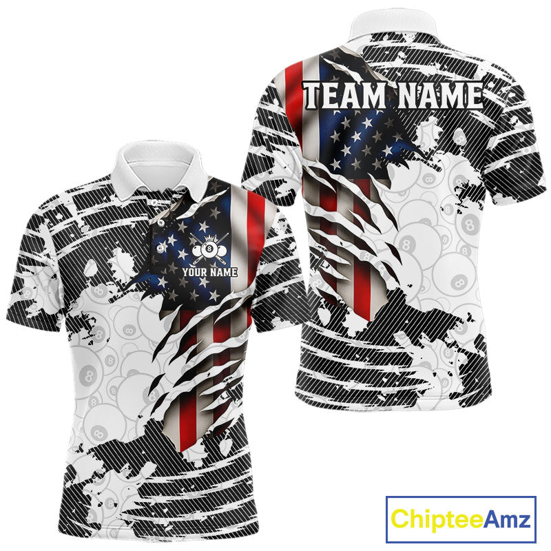 US Flag 8 Ball Men Billiard Team Shirt Custom Patriotic Pool Polo & 1/4-Zip Billiard Attire NYN2378
