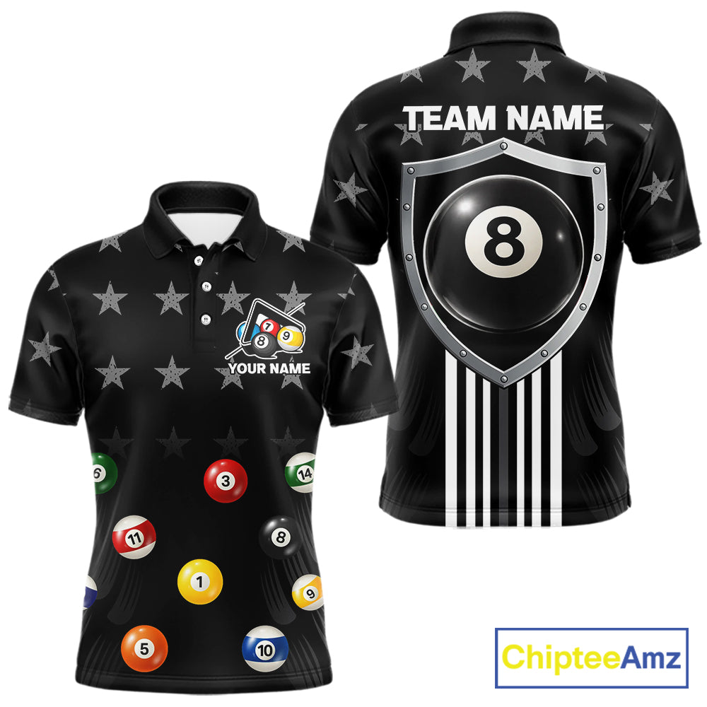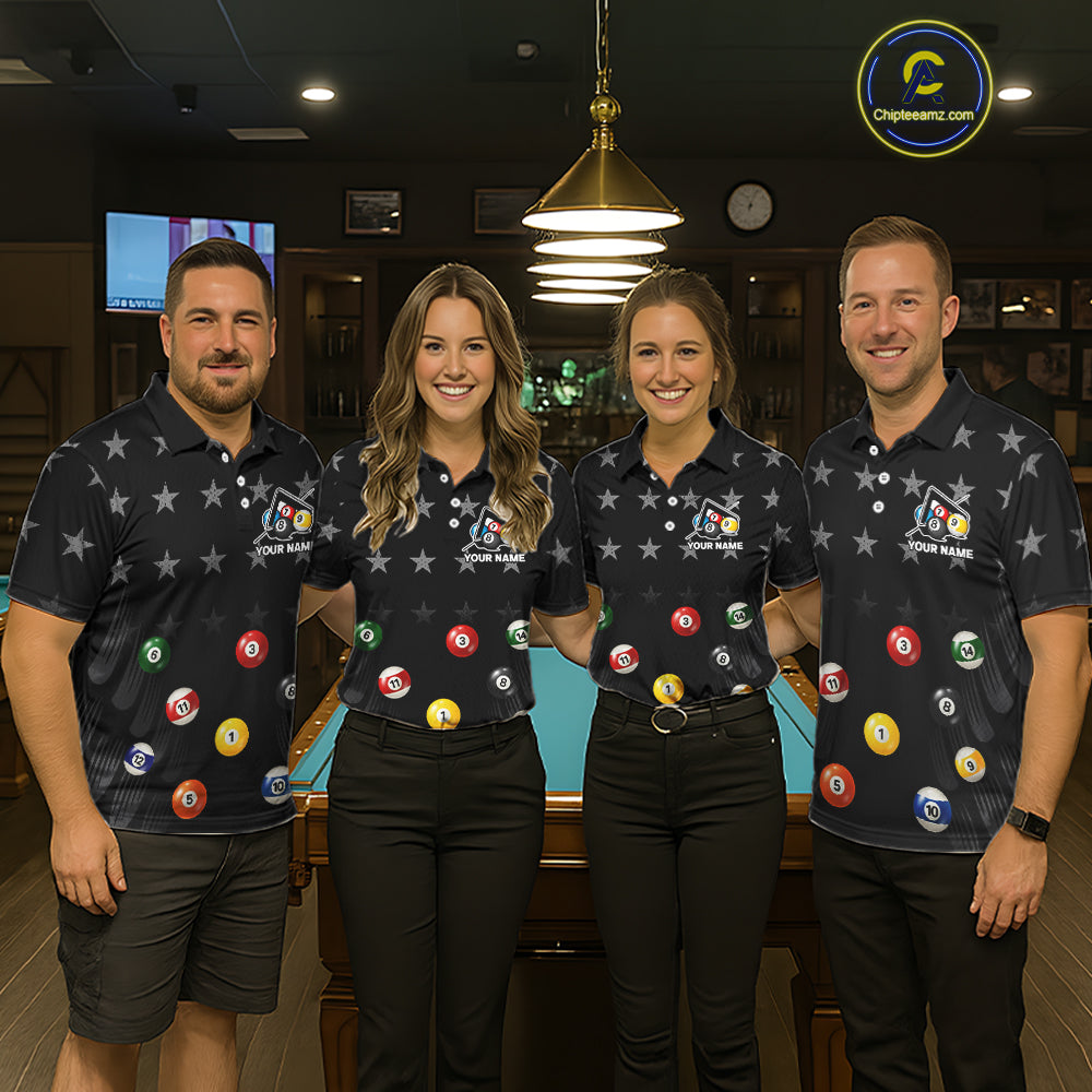 Black Stars 8 Ball Pool Men Billiard Team Shirt Personalized Polo & 1/4-Zip Billiard Gifts NYN2381