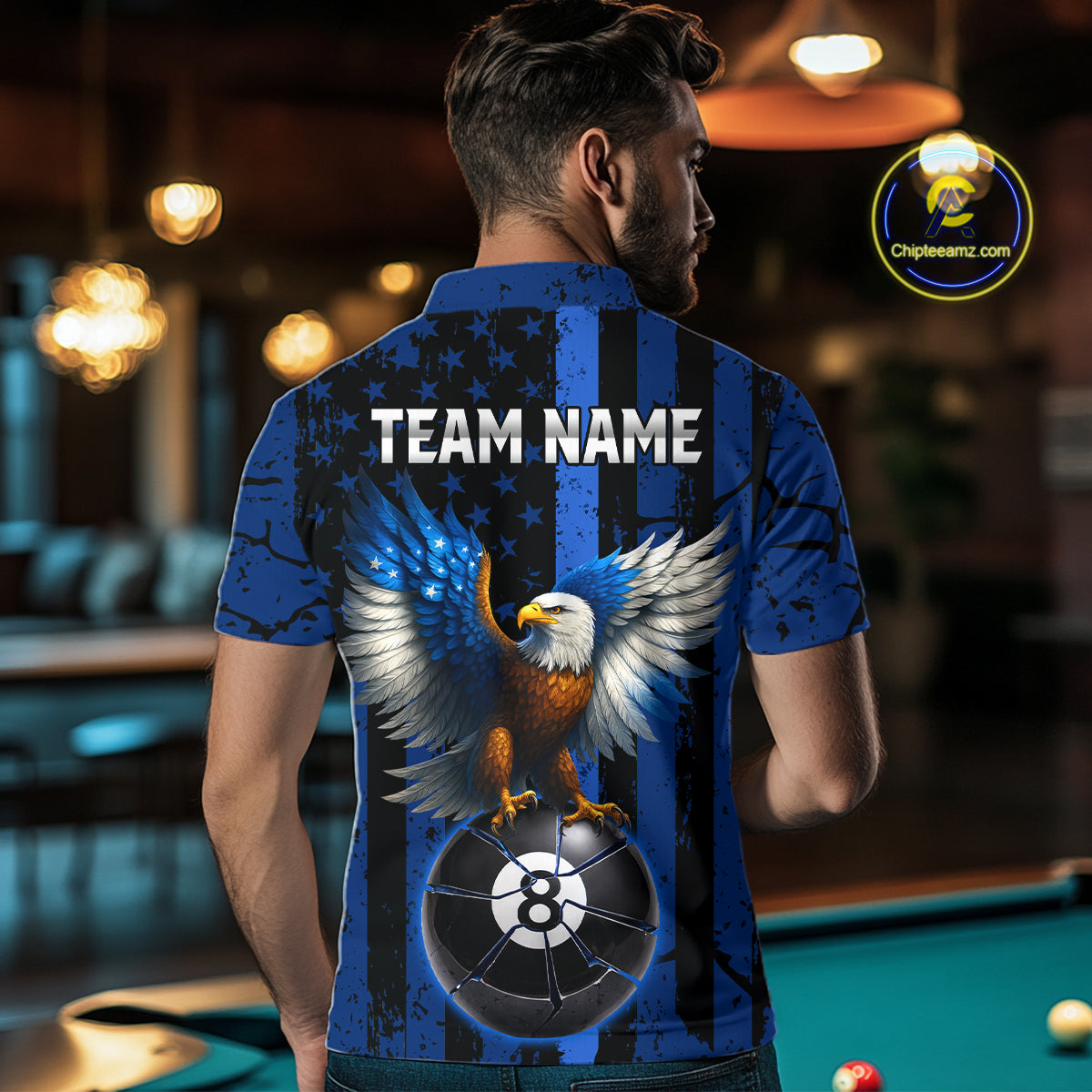 Eagle Crack 8 Ball Pool Men Billiard Team Shirt Custom Polo & 1/4-Zip Billiard Apparel|Blue NYN2382
