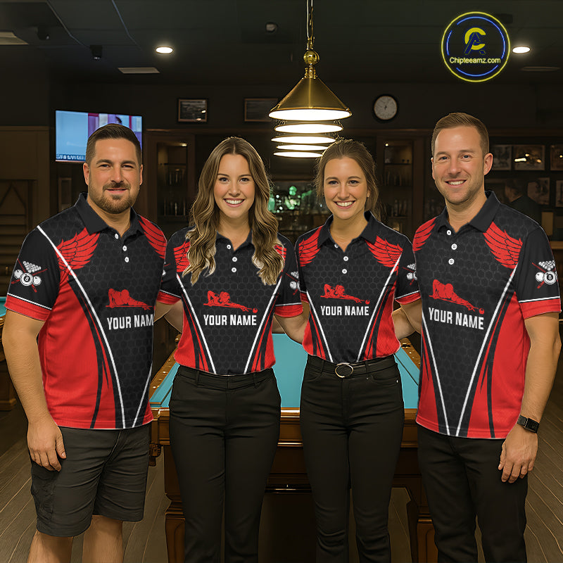 Red Wings 8 Ball Pool Team Shirts Men's Billiard Polo & 1/4-Zip Personalized Billiard Gifts NYN2399