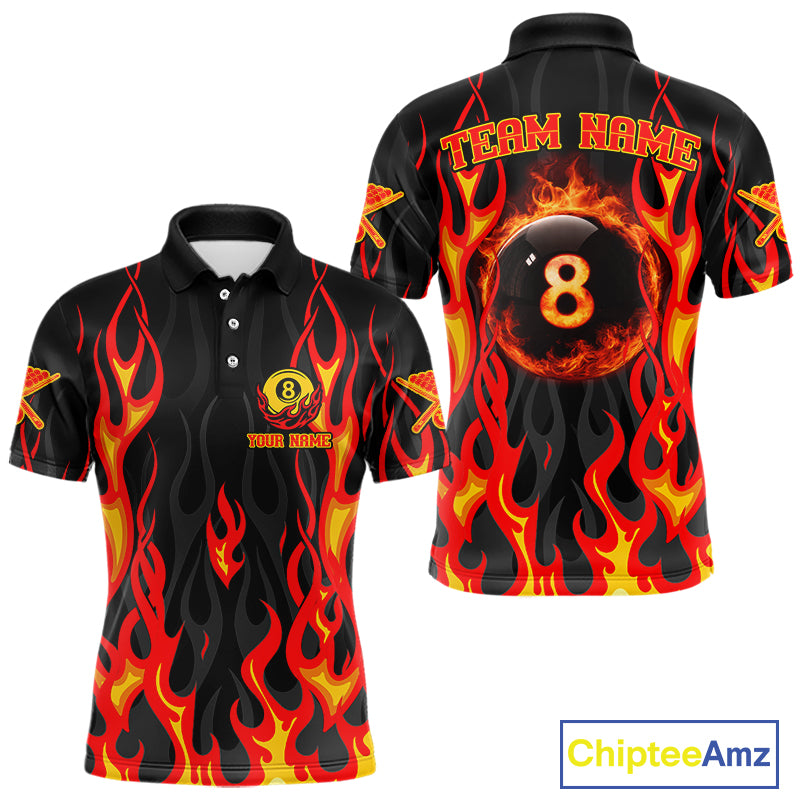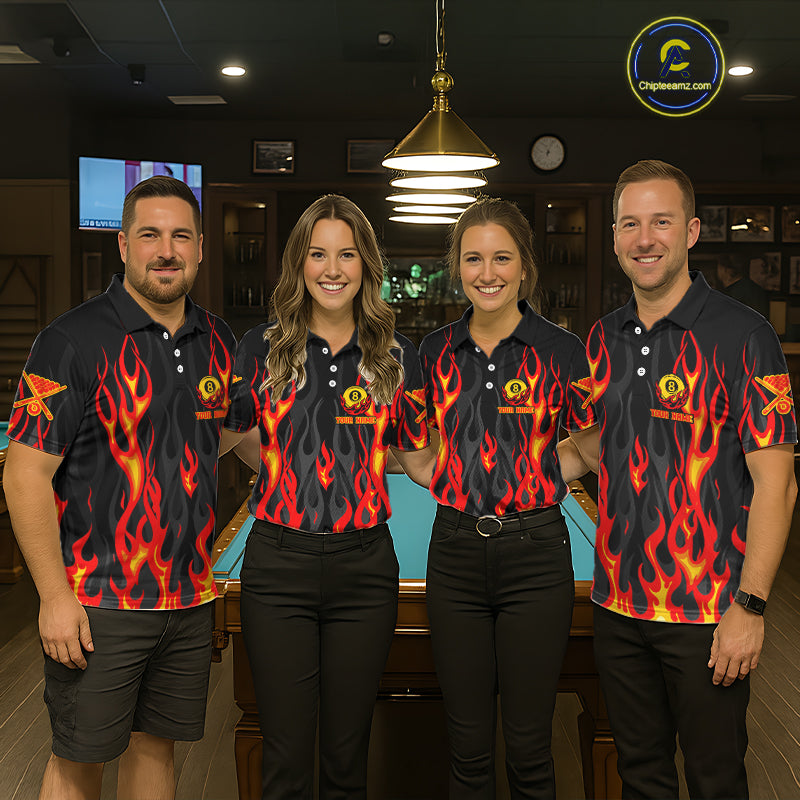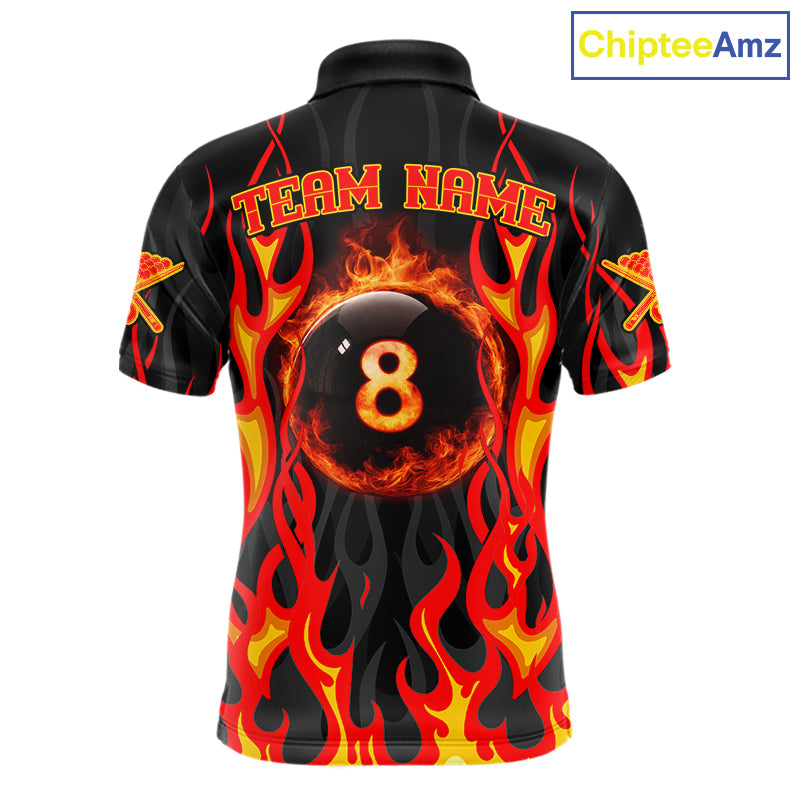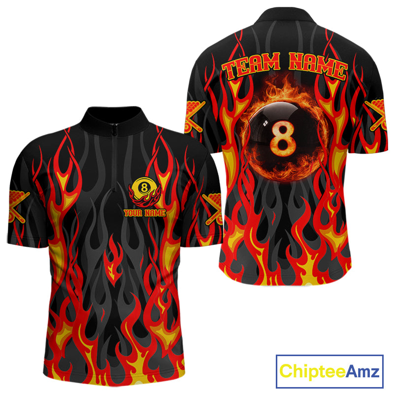 Fire Flame 8 Ball Pool Men Billiard Polo & 1/4-Zip Attire Custom Red Billiard Shirt Designs NYN2412