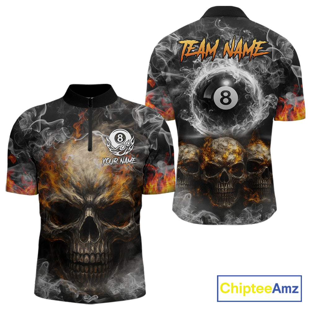 Fire Flame Skull Balls Billiard Shirt For Men Custom Smoke Ball 8 Pool Billiard Team Shirts NYN2414