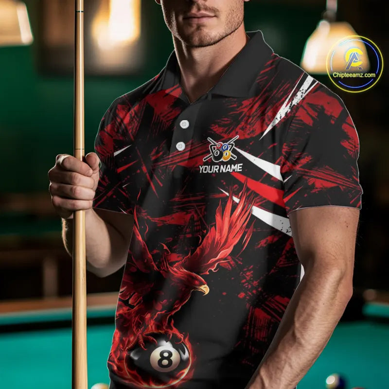 Eagle Red Flames 8 Ball Pool Polo & 1/4-Zip Shirt For Men Personalized Balls Billiard Gifts NYN2423