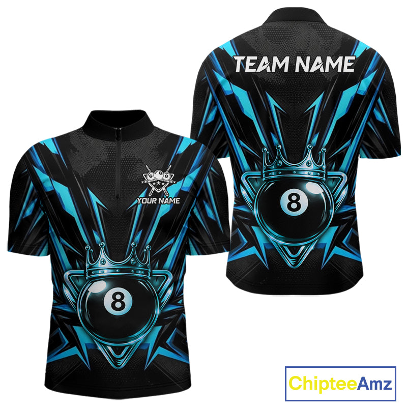 Black And Blue Crown 8 Ball Pool Polo & 1/4-Zip Shirt For Men Personalized Ball Billiard Gifts NYN2424