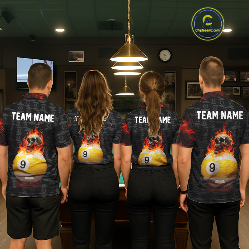 Fire Skull 9 Ball Pool Billiard Team Shirt For Men Custom Red Flames Billiard Ball & Cue Gifts NYN2437