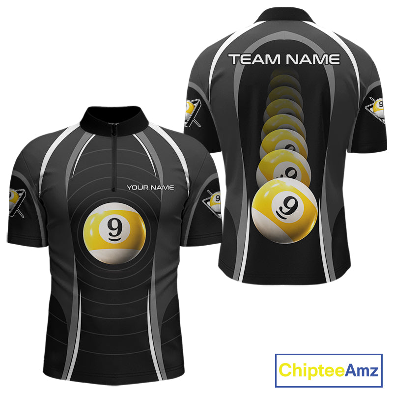 Black Blur 9 Ball Pool Polo & 1/4-Zip Team Shirt For Men Personalized Billiards Ball Apparel NYN2454