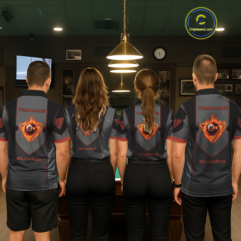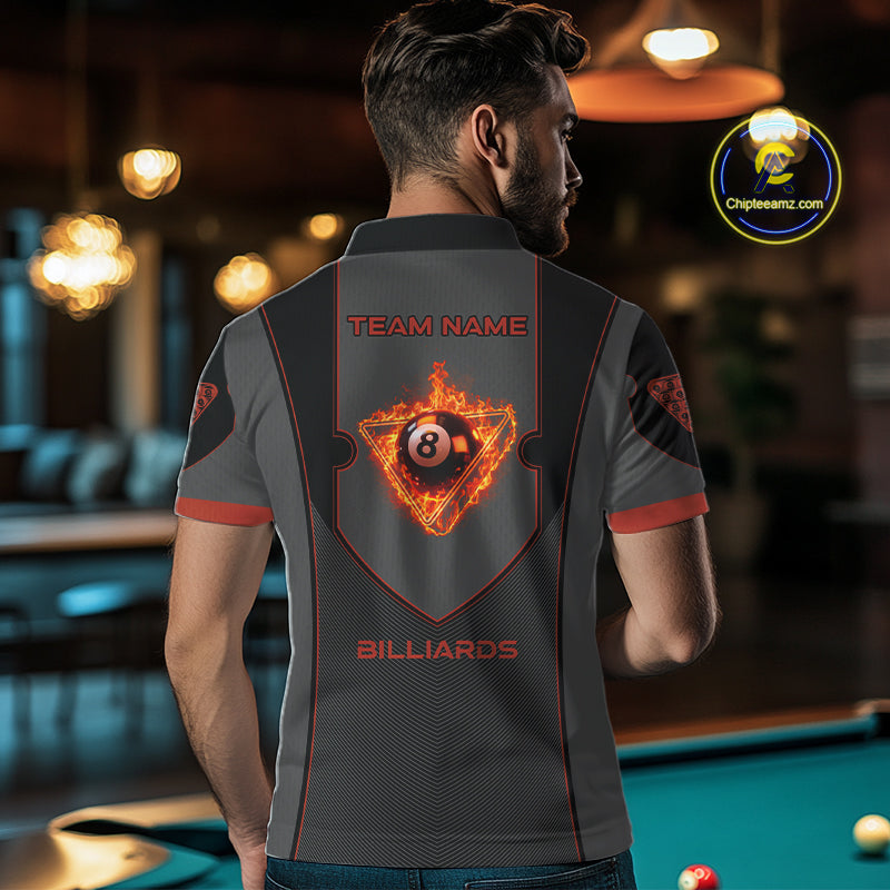 Fire Flame 8 Ball Pool Polo & 1/4-Zip Team Shirt For Men Custom Billiards Ball Apparel|Red NYN2456