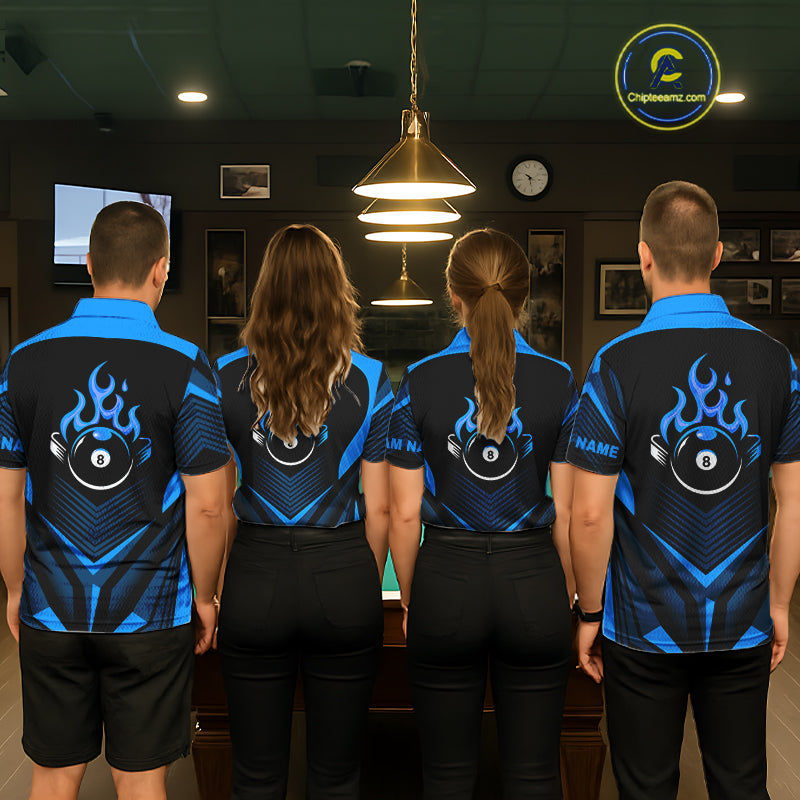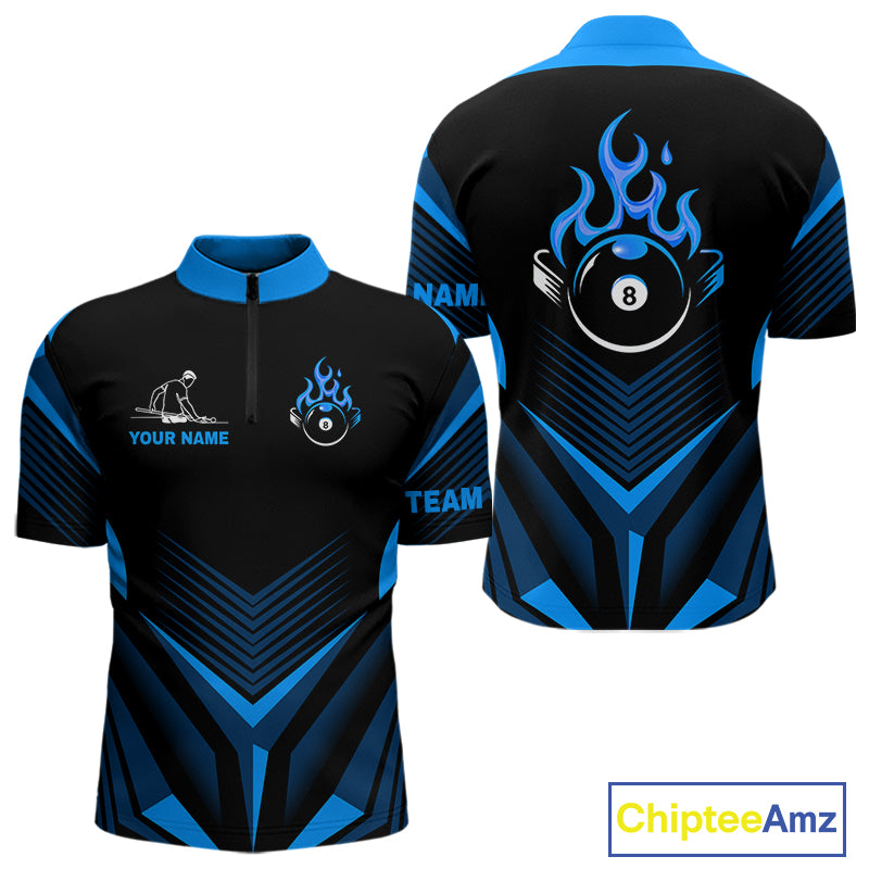 Blue Flaming 8 Ball Pool Polo & 1/4-Zip Team Shirt For Men Custom Billiards Ball Apparel NYN2465