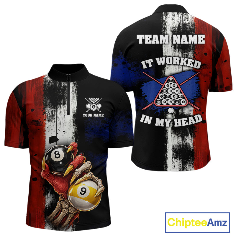 Skull Hoding 9 Ball & 8 Ball Pool Men Billiard Team Shirt Custom Blue & Red Billiards Ball Apparel NYN2468