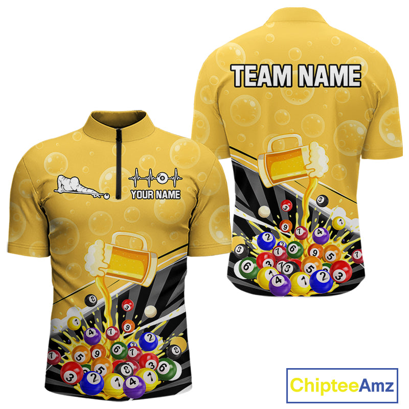 Funny Beer And Pool Balls Billiard Team Shirt For Men Custom Billiard Polo & 1/4 Zip Attire NYN2477