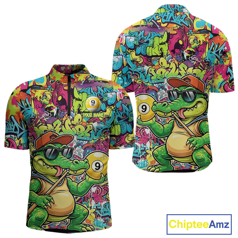 Graffiti Funny Crocodile Pool 8 Ball Men Billiard Team Shirt Custom Billiard Balls Attire NYN2501