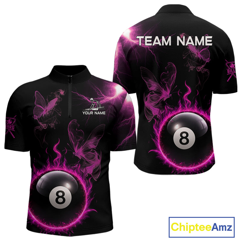 Pink Smokes Butterfly Pool 8 Ball Men's Billiard Team Shirt Custom Billiard Polo & 1/4-Zip Attire NYN2505
