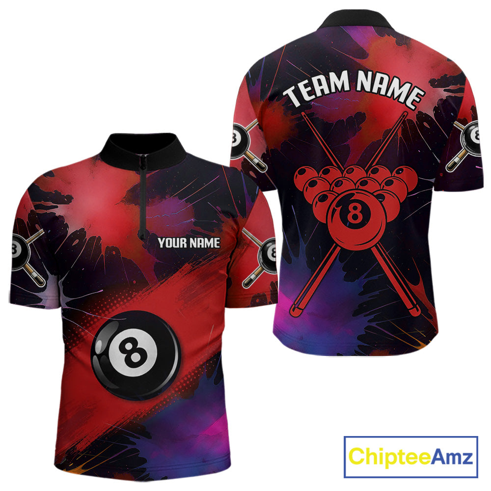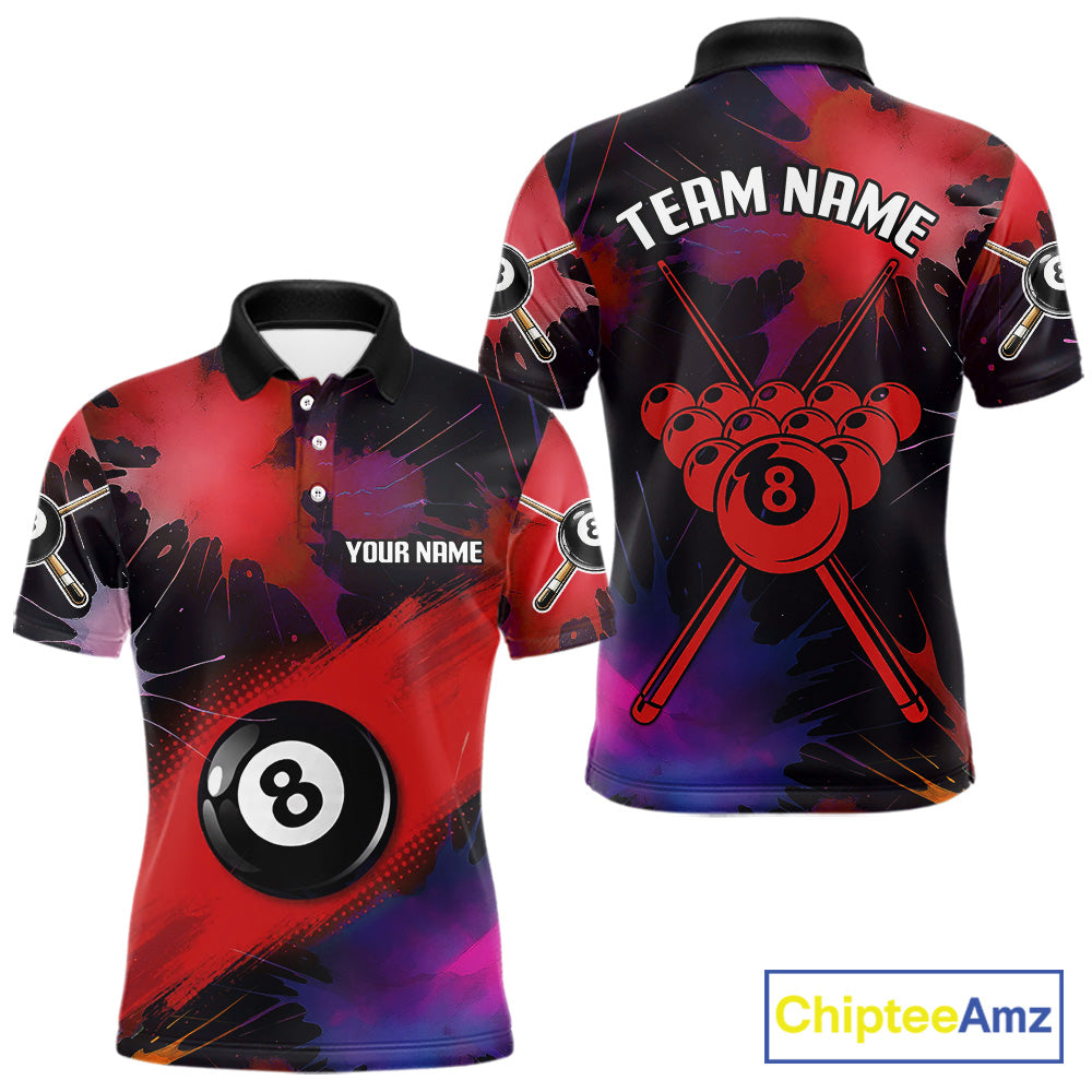 Grunge Paint Splatter Pink Ball 8 Billiard Shirts For Men Personalized Billiard Attire Gifts NYN2789